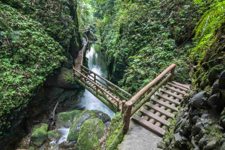 想要远离城市喧嚣?来青城山爬山吧!以“青城天下幽”著称的青城山是中国著名的道教名山。这里绿树成荫、空气清新,特别适合来个休闲的徒步旅行。如果时间充裕,还可以参观寺庙,感受道家文化的宁静与深邃。