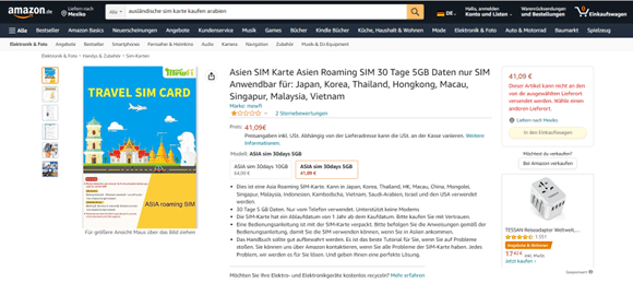 - Nicht für alle Länder bietet Amazon eine SIM-Karte an