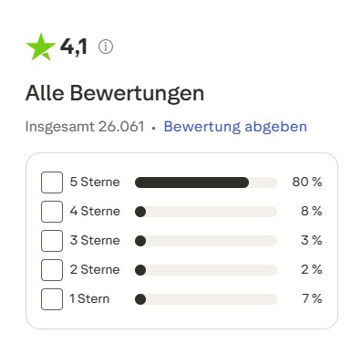 Trustpilot ist die Plattform, auf der Nutzer weltweit ihre Erfahrungen zu Produkten und Services teilen. Was ExpressVPN betrifft, loben die meisten Bewertungen vor allem die starke Leistung: schnelle Verbindungen, einfache Bedienung und hohe Sicherheit. Viele schätzen auch, dass sie damit gesperrte Inhalte entsperren können und der Kundensupport top ist. Klar, manche finden den Preis etwas hoch, aber die meisten sind überzeugt, dass die Qualität den Preis mehr als rechtfertigt.
