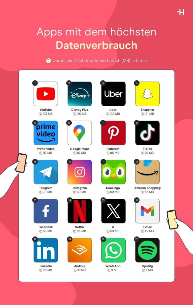 Welche App verbraucht am meisten Datenvolumen? – Vergleichstabelle