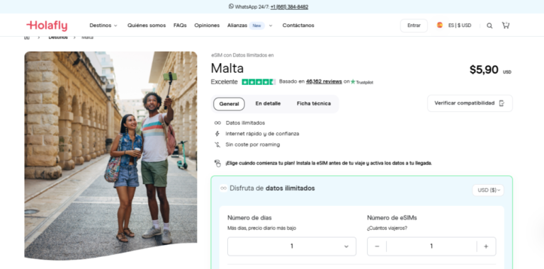 Connect worry free to the internet with Holafly’s Data eSIM! We give you unlimited data and high speed in over 100 destinations, including Malta, with no roaming charges. Stay in touch with your projects and family without interruption.