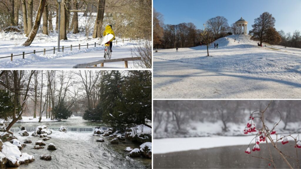 El invierno en Múnich es una prueba de resistencia. La temperatura del aire puede caer por debajo de 0 °C, y el agua del Eisbach ronda los 4–6 °C. Sin embargo, los surfistas más comprometidos (o los más tercos) siguen entrando, equipados con trajes secos, guantes y capucha térmica.