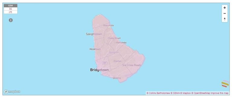 Mapa de cobertura de internet en Barbados