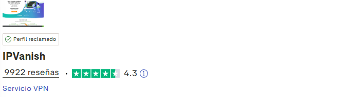 A IPVanish VPN, en la misma plataforma, la puntúan con un 4.3 sobre 5, destacando la facilidad de instalación, la relación calidad-precio y su atención al cliente:
