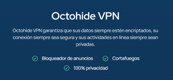 Poco a poco ha ido evolucionando y añadiendo más ubicaciones en sus servidores, mejorando también su tecnología de cifrado. También ha ampliado sus aplicaciones para diferentes tipos de dispositivos y reforzado algunas funciones importantes para añadir un extra de seguridad, como la ocultación de la IP real y el acceso a contenido restringido por país. En resumen, si buscas una VPN fácil de usar y segura, Octohide VPN te permite navegar sin complicaciones y de forma totalmente privada.