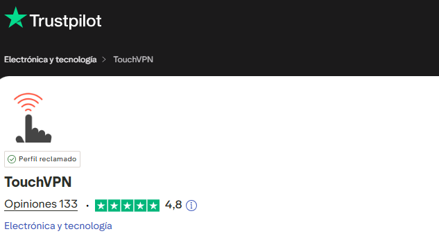 Si revisamos algunas plataformas oficiales como Trustpilot, vemos que las opiniones de Touch VPN de los usuarios que ya la han probado, le dan una puntuación de 4,8 sobre 5, basado en más de 130 reseñas. Lo que más valoran son aspectos como la simplicidad, facilidad de uso y la opción gratuita de la VPN. ¿Quieres leeras? Te dejamos las más destacadas: