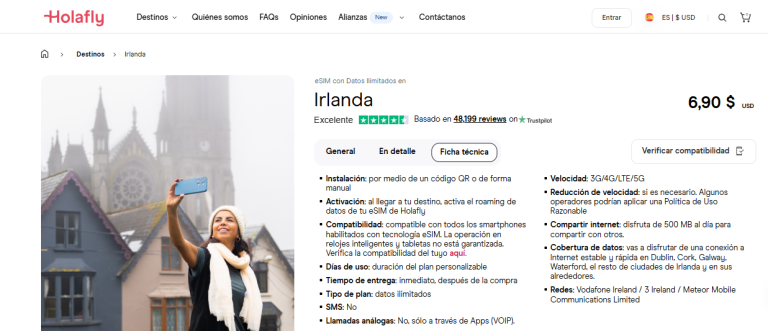 Con Holafly accedes a internet sin fronteras. ¡Activa tu eSIM para Irlanda y disfruta de datos ilimitados por los días que necesites.