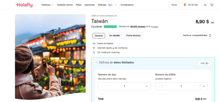 No pierdas tiempo buscando chips o Wi-Fi en Taiwán. Activa tu eSIM para Taiwan de Holafly antes de llegar y disfruta de internet ilimitado y de alta velocidad. ¡Navega y trabaja desde donde quieras!
