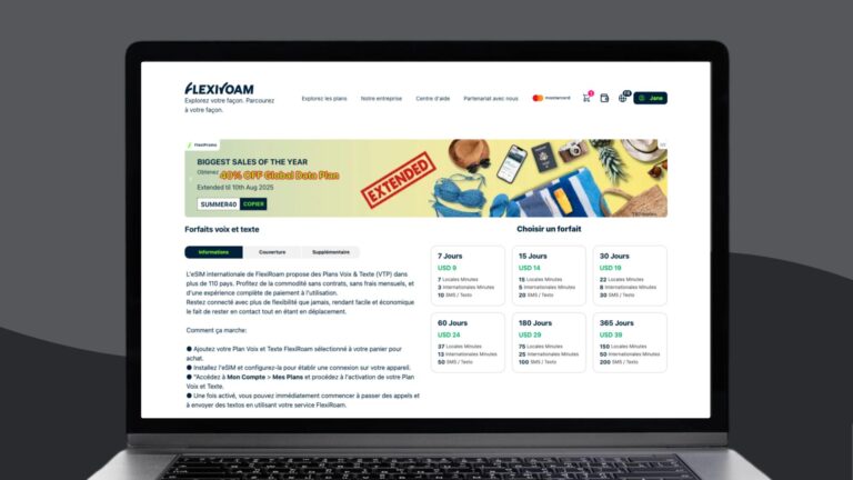 FlexiRoam est un fournisseur d’eSIM de voyage qui permet de rester connecté à l’étranger, sans avoir à payer des frais d’itinérance de données.