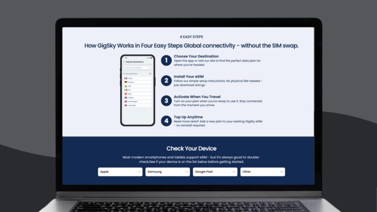 Vous envisagez GigSky pour votre prochaine eSIM internationale ? Pour vous aider à vous faire un avis sur Gigsky, découvrez notre analyse complète de ses caractéristiques. Nous passons au crible le service eSIM GigSky : forfaits, tarifs, avis clients et fonctionnalités principales.