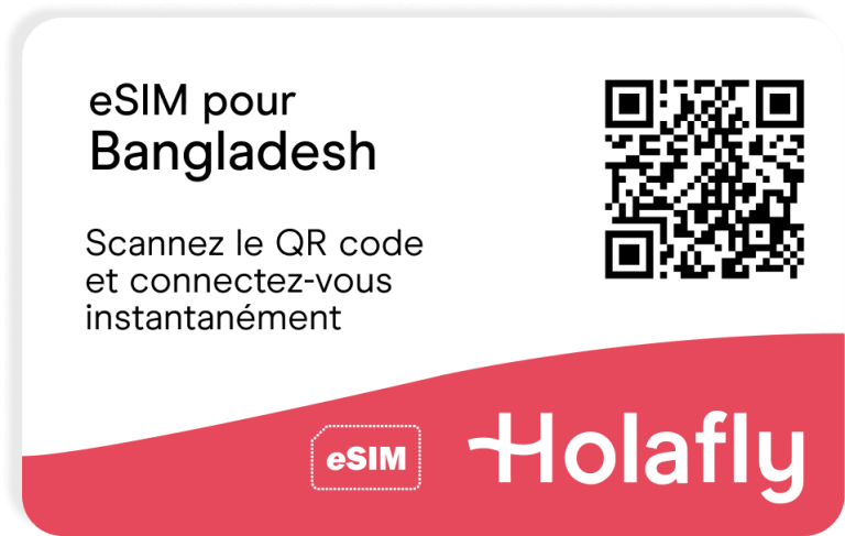 L’installation de l’eSIM se fait par l’intermédiaire d’un QR code, et s’effectue avant de se rendre au Dhaka. Il est nécessaire de configurer votre plan de données avant votre arrivée dans le pays.