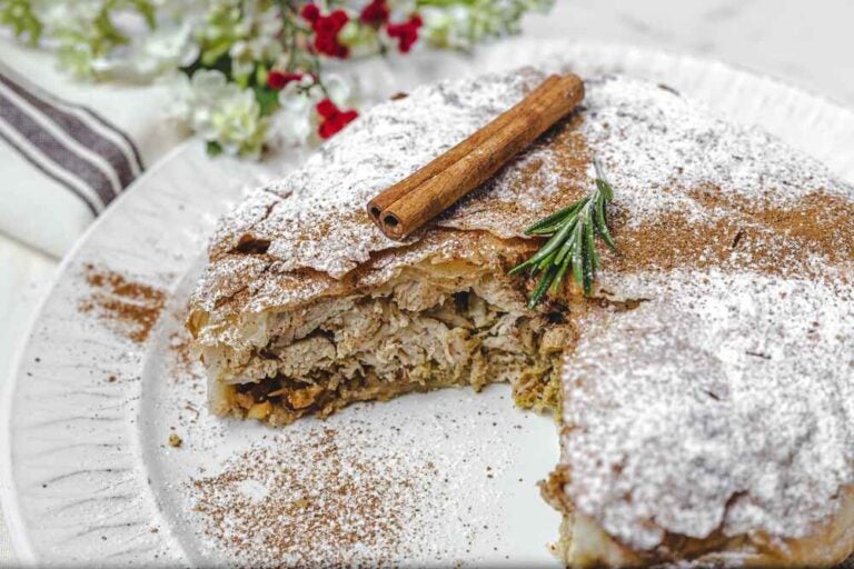 On y ajoute des amandes et bien sûr des épices comme la cannelle, le gingembre et le safran. À Fès, vous pourrez aussi déguster la variante sucrée de ce gâteau de pâte feuilletée, garnie de fécule de maïs et de crème de lait.