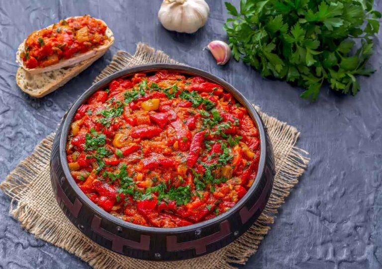Ce plat qui rappelle les saveurs méditerranéennes est composé de poivrons grillés à la peau, ensuite cuits avec des tomates et de l’ail dans de l’huile d’olive. On y ajoute du cumin et du paprika pour rehausser son goût. La taktouka est servie tiède ou froide selon les envies.