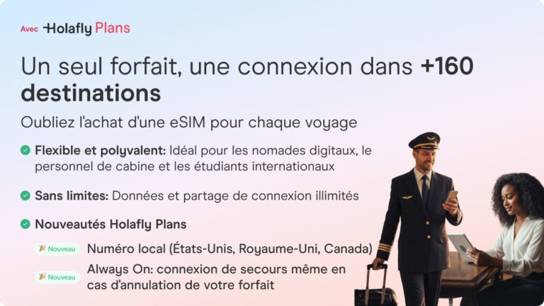 Non, Holafly inclut ce service sans coût supplémentaire.Il concerne les abonnements Holafly activés à partir du 4 novembre 2025. Son déploiement s’étendra progressivement à tous les forfaits mensuels et annuels.