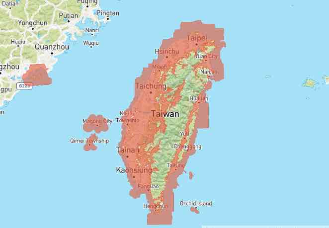 Comme nous l’avons dit antérieurement, l’eSIM d’Holafly eSIM Taiwan se connecte aux réseaux de Chunghwa Telecom et Taiwan Mobile, les meilleurs opérateurs cellulaires du pays. Pour cette raison, nous vous montrons ensuite les images de leur couverture mobile dans le territoire.