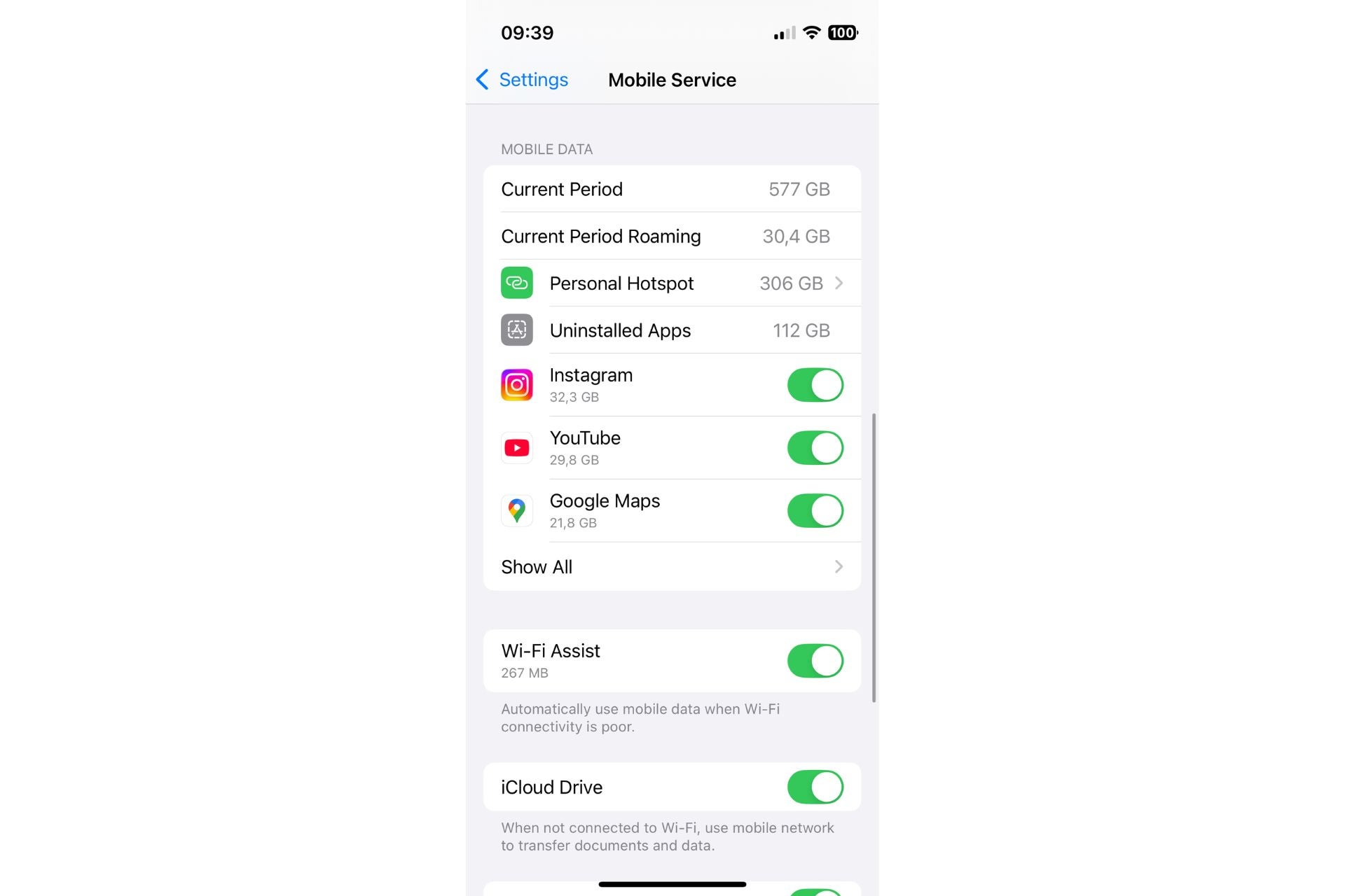 You can disable the apps that use the most data, such as YouTube, Netflix, or TikTok, from working when you’re connected to cellular data. That way, these apps will only work on WiFi and won’t deplete your data allowance.