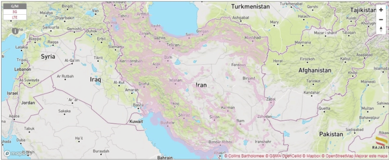 Internet coverage map in Iran