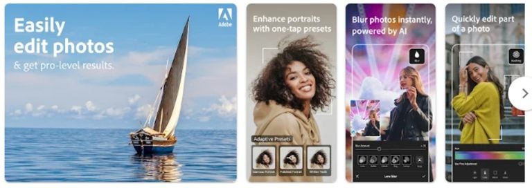 La seconda app di Adobe, Lightroom, altamente consigliata per migliorare le foto del tuo viaggio e della tua vita quotidiana. Potrai anche ottenere una prova gratuita per un po’ e poi dovrai pagare ogni mese 12,19 euro. Insieme a Photoshop è uno dei migliori per ritoccare ogni foto: rimuovere difetti, correggere l’illuminazione, contrasti, filtri e molto altro.