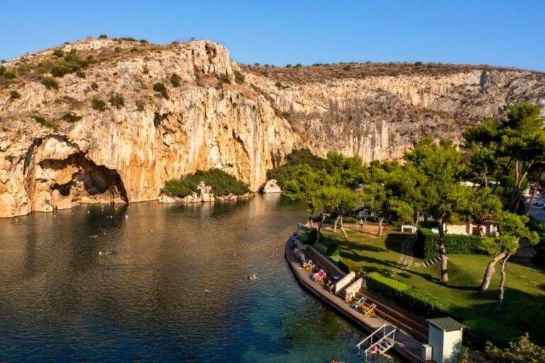 Nuota nelle acque calde e ricche di minerali del lago Vouliagmeni, un lago termale unico nel suo genere che offre una giornata di vero relax ad Atene, a pochi passi dalla città. Goditi una nuotata tutto l’anno nelle acque terapeutiche del lago e approfitta delle strutture termali disponibili. La sua vicinanza lo rende una meta incredibilmente comoda per concedersi un po’ di meritato relax.