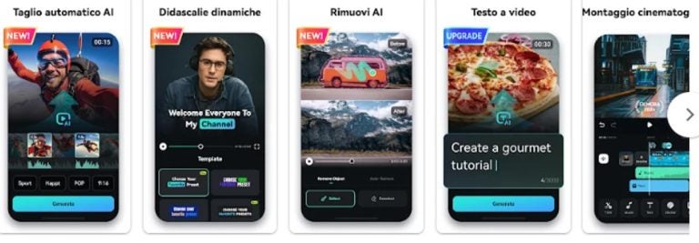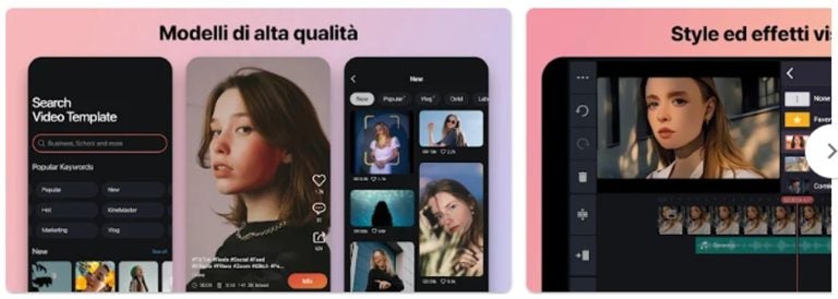 Negli ultimi anni questa app è stata riconosciuta come una delle migliori applicazioni per l’editing di video per i social network. Ha molte opzioni che possono essere utilizzate gratuitamente. Puoi realizzare creazioni da zero o utilizzare modelli per montaggio video, con l’aiuto dell’intelligenza artificiale i tuoi video avranno un aspetto migliore e avrai a disposizione diverse funzioni ed effetti pe ri tuoi contenuti.