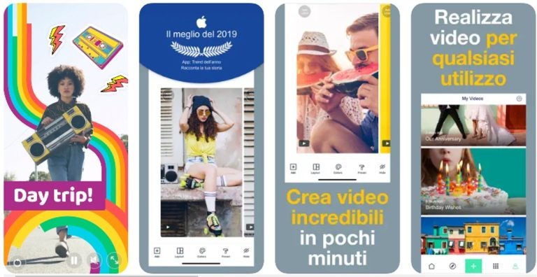 La prima applicazione che ti mostrerò è Magisto, un editor video che può essere utilizzato sia su smartphone Android che iOS. Permette di modificare i video tagliandoli, aggiungendo audio, testo, musica, effetti o adesivi; è inoltre possibile utilizzare modelli progettati per ogni occasione che possono essere modificati a proprio piacimento.