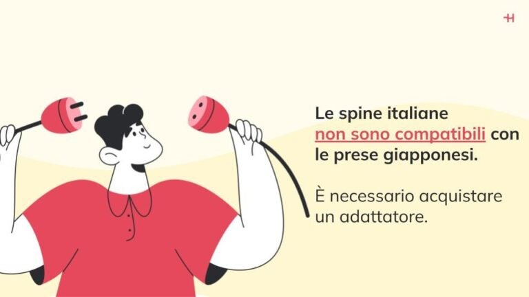 Qui c’è un aspetto importante da considerare. In Giappone la rete elettrica funziona a 100 Volt (V), con una frequenza di 50 Hz nella zona di Tokyo e 60 Hz nella zona di Osaka e del Giappone occidentale. In Italia, invece, la tensione è di 230 V a 50 Hz.