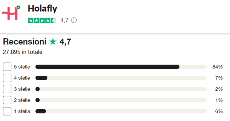 Trustpilot è un sito dedicato alla pubblicazione delle opinioni degli utenti sui prodotti di diverse aziende rinomate. Anche Holafly fa parte della loro piattaforma e sono disponibili diverse recensioni di Holafly. Durante l’aggiornamento di questo post, ci sono state 25.000 recensioni/opinioni di Holafly, con un punteggio di 4,6 su 5. Ora ti mostreremo una raccolta di alcune opinioni: