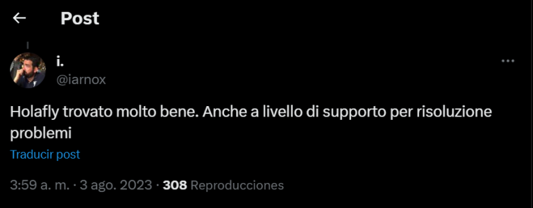 Su Twitter ci sono centinaia di utenti che esprimono la loro opinione sulla recensioni di Holafly. La maggior parte di loro sottolinea il buon servizio che hanno ricevuto per risolvere i loro problemi, come funziona la scheda eSIM e perché è l’opzione migliore. Ecco alcuni commenti:
