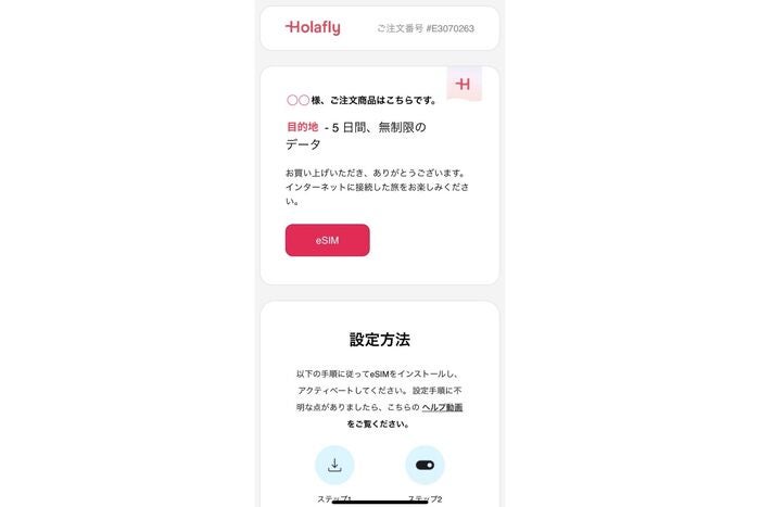 eSIMを提供している専門サイトは、上記で紹介したブランド以外にもeSIM Mart、Trifa、TraveSIM、などがあります。購入・設定方法はeSIM専門サイトにより異なるため、ここではHolaflyのeSIMを例に挙げて説明します。