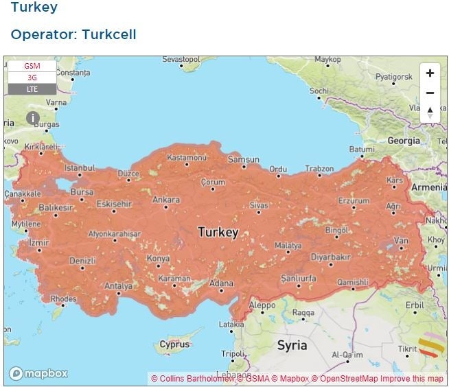 特に、Turkcellは、国内最大手で、ネットワークが一番強いキャリアです。以下で、Turkcellを例に、LTEネットワークの対応エリアを地図で確認しましょう。