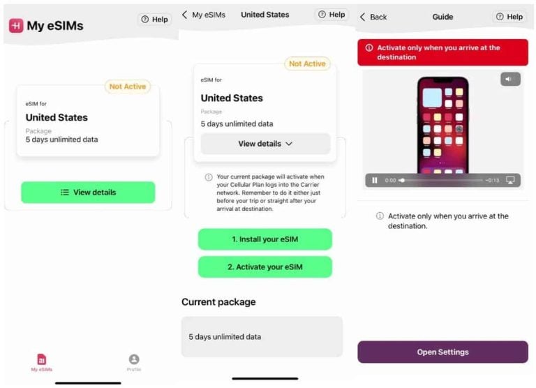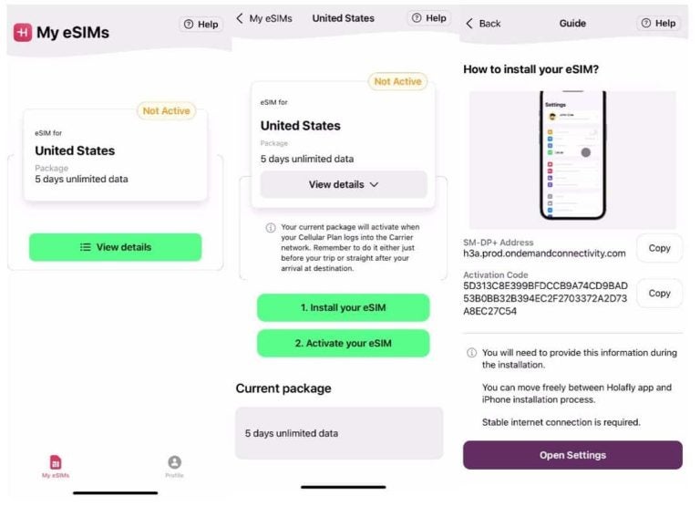 Steps to install the eSIM from the Holafly eSIM App