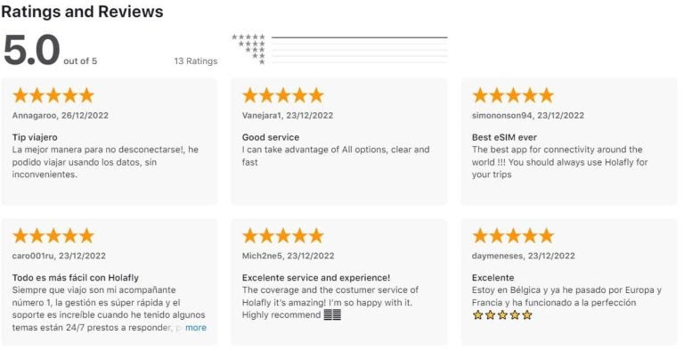 Reviews of the Holafly eSIM App