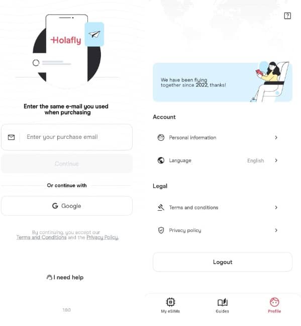 Login to the Holafly eSIM App for Android