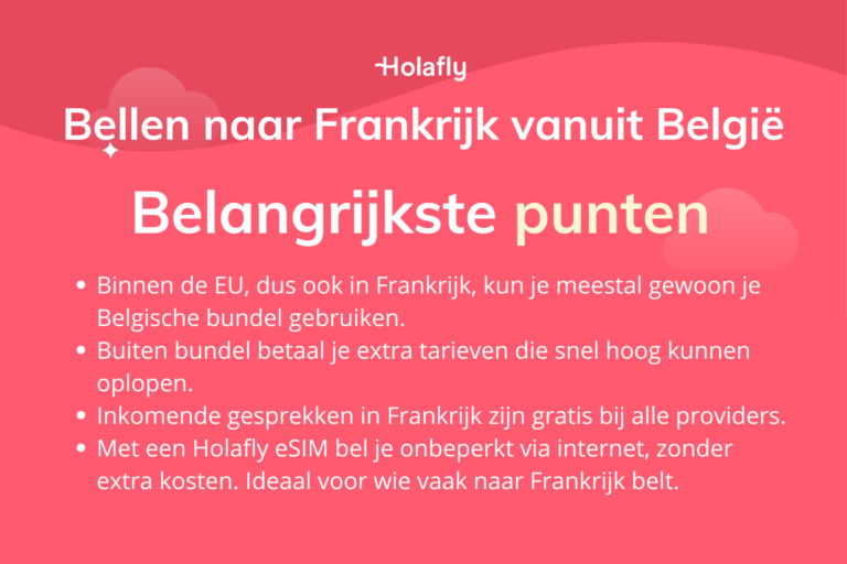 Maar kom je buiten je bundel, dan betaal je de standaardtarieven die snel oplopen. Een groot nadeel dus als je vaak vanuit België naar Frankrijk wilt bellen. Een eSIM met onbeperkt internet is in dat geval vaak voordeliger.
