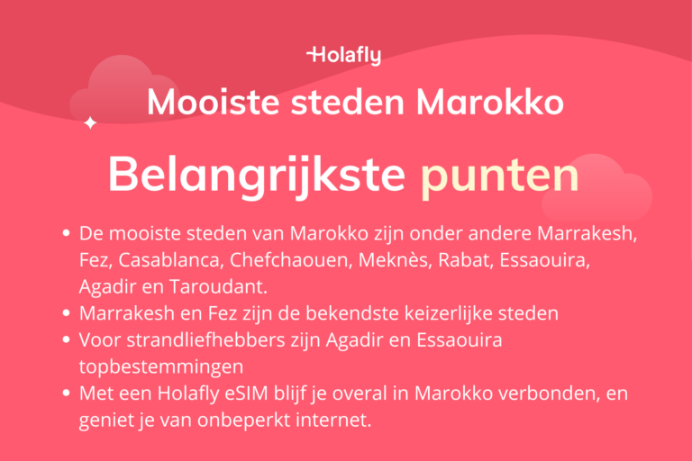 Wil je tijdens je stedentrip of roadtrip altijd online blijven? Dan is de Holafly eSIM voor Marokko de ideale oplossing. Met onbeperkt mobiel internet in Marokko hoef je je geen zorgen te maken over hoge roamingkosten of zoektochten naar een lokale simkaart voor Marokko.
