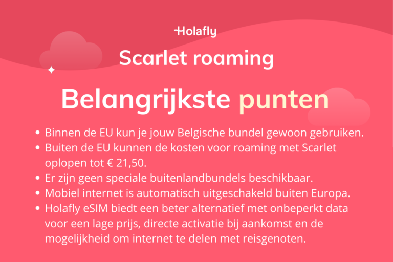 Ben je klant bij Scarlet en vertrek je binnenkort op reis? Lees in dit artikel met welke kosten je moet rekening houden en ontdek een alternatief met onbeperkt internet: de Holafly eSIM.