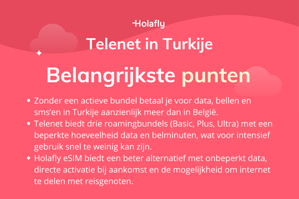 Telenet werkt in België uitstekend, maar in Turkije kunnen de roamingkosten flink oplopen als je geen bundel activeert. Gelukkig zijn er genoeg alternatieven om zorgeloos online te blijven, en misschien wel de beste optie is de Holafly eSIM.