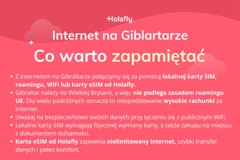 Podróżując do Gibraltaru, masz kilka opcji dostępu do sieci – od roamingu, przez lokalne karty SIM i publiczne Wi-Fi, aż po najwygodniejsze rozwiązanie, jakim jest eSIM Holafly.