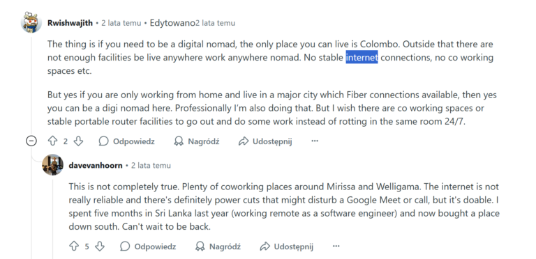 Na Redditowym forum poświęconym Sri Lance można znaleźć dość negatywne głosy dotyczące jakości połączenia.