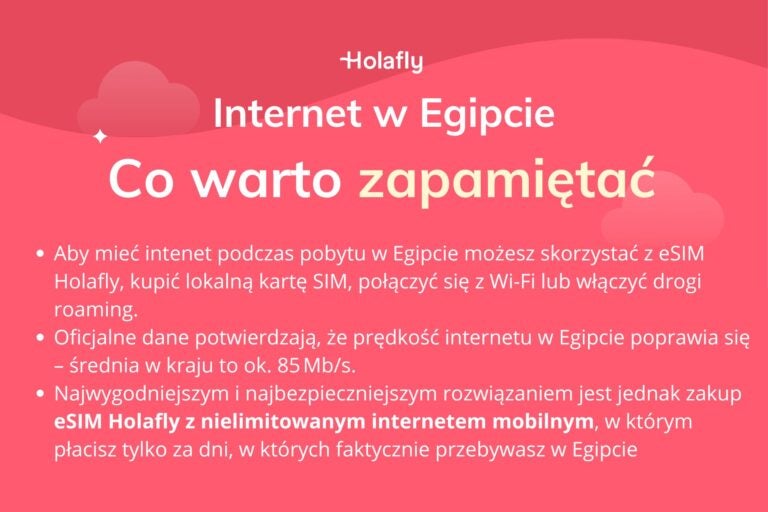 Najwygodniejszym i najbardziej opłacalnym rozwiązaniem na internet w Egipcie jest eSIM Holafly z nielimitowanymi danymi – idealna opcja zarówno dla turystów, jak i osób pracujących zdalnie.