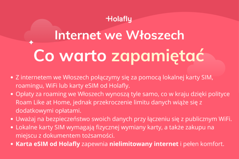 Podróżując do Włoch, masz do wyboru kilka sposobów na dostęp do sieci – roaming, lokalną kartę SIM, publiczne Wi-Fi czy eSIM Holafly.
