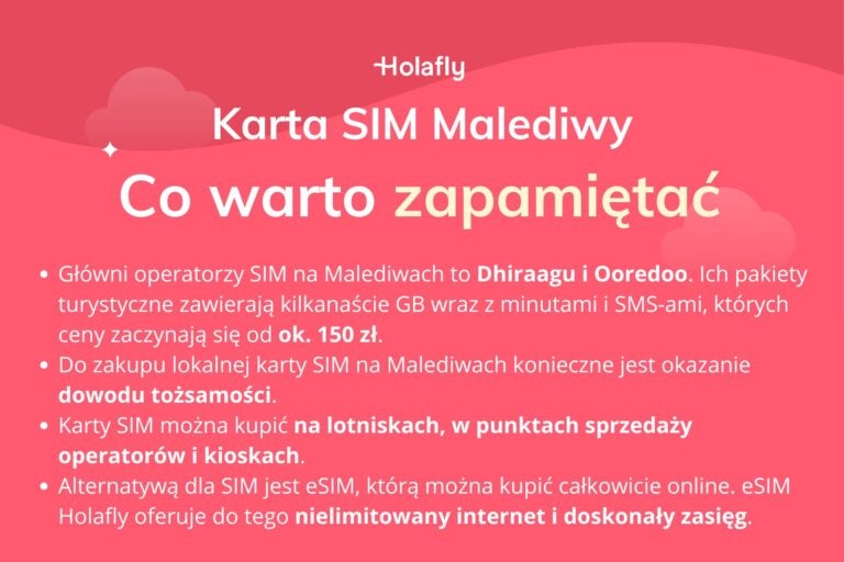 Jeśli chcesz uniknąć tego typu niedogodności, możesz postawić na kartę eSIM Holafly z nielimitowanym internetem, wbudowanym VPN-em i doskonałą łącznością na całych Malediwach (ocena 4,6 na Trustpilot).