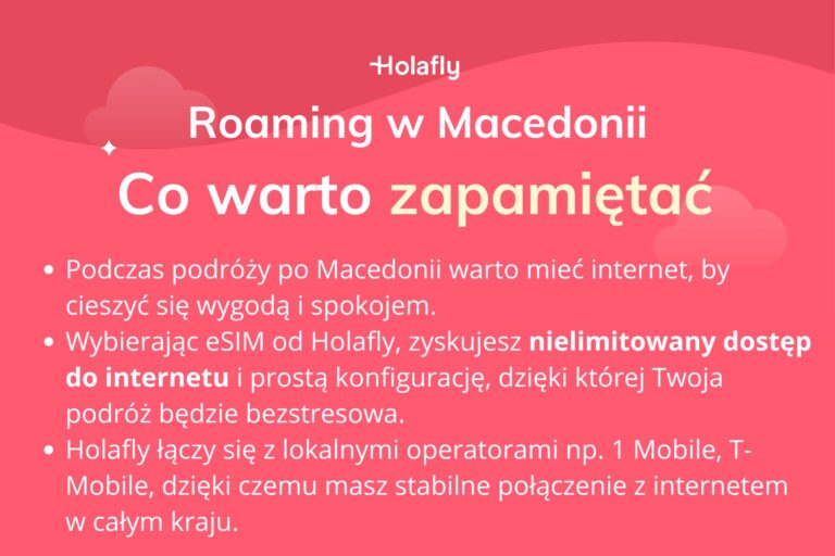 Roaming w Macedonii jest drogi. Sprawdź tabelę opłat polskich operatorów komórkowych i skorzystaj z karty eSIM od Holafly z internetem bez limitu.