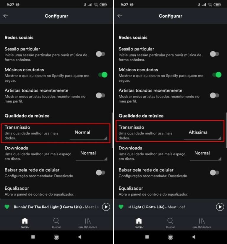 Anteriormente, mencionamos a relação entre a qualidade da música e o consumo dos dados. Independentemente do plano do Spotify, esse atributo estará previamente definido como “Alta”, visando favorecer a experiência do usuário. Nesse sentido, basta ir até o menu “Ajustes” do seu app e mudar a qualidade de “Alta” para “Normal”. Assim, o consumo será bem menor!