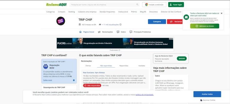 Opiniões sobre a TRIP CHIP no Reclame Aqui