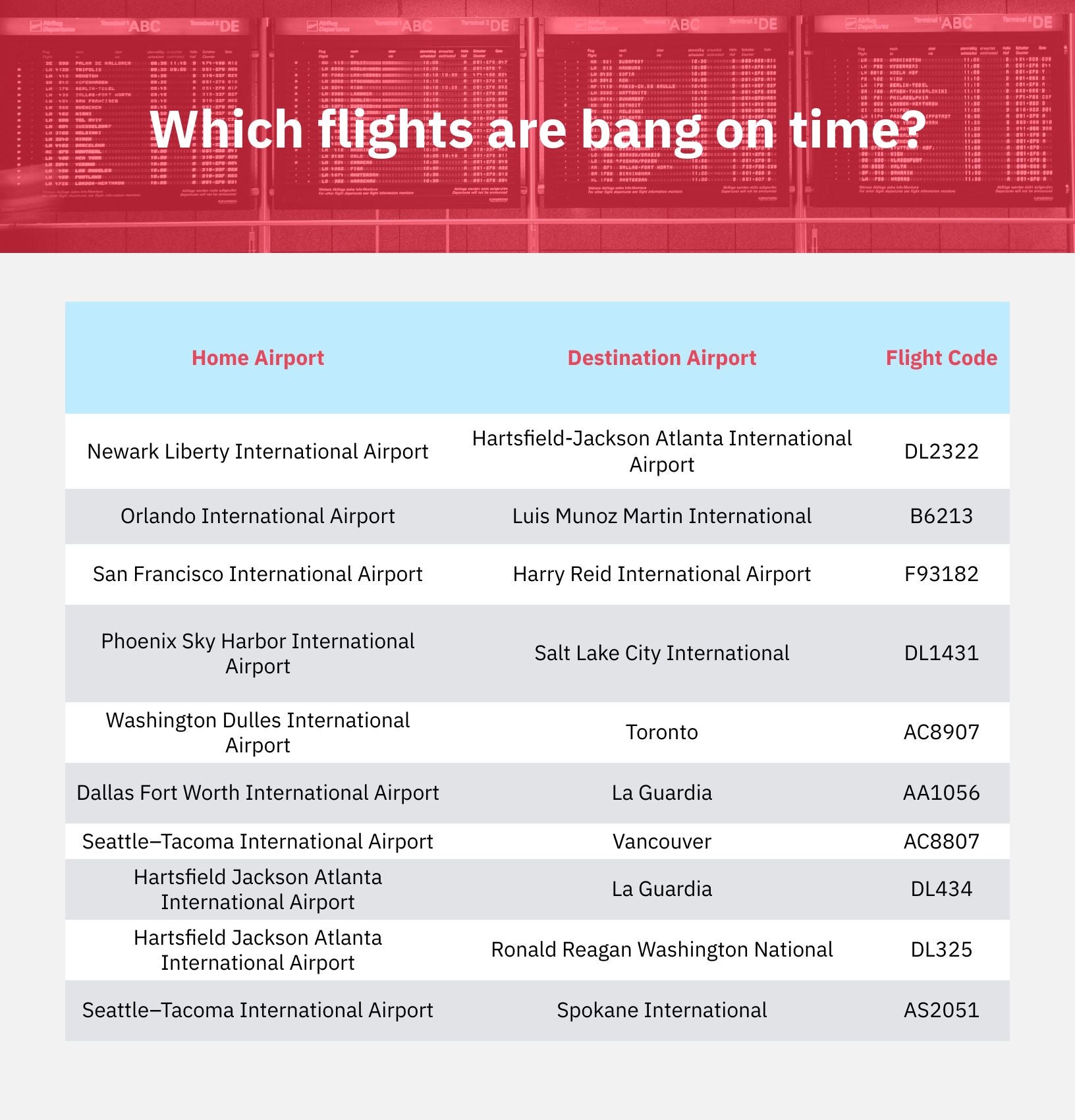 Completing the Big Apple – dominated top five is the JFK routes to both Boston and London Heathrow, on average arriving 18 minutes past its scheduled arrival.