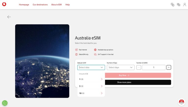 To top up your Vodafone Travel eSIM, log in to your Vodafone Travel account and head to My Account. Then, click on “eSIM” and then “Top-up,” where you will see the available options.
