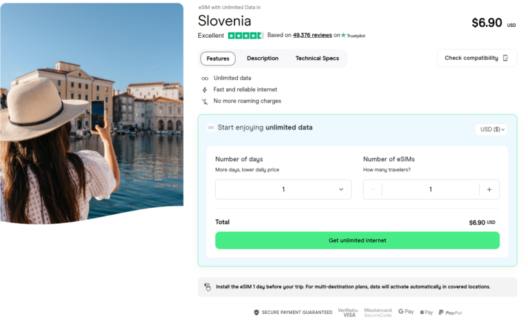 The eSIM for Slovenia, which costs $6.90 with unlimited data and data sharing, is one of the finest options to utilize if they have an eSIM-compatible mobile.