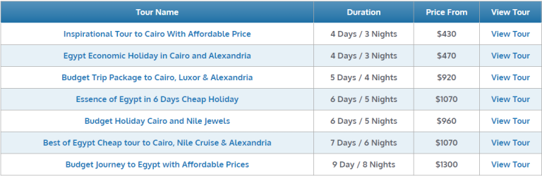 With this clear, the next step is to choose one of the tour packages offered by these companies. For example, Egypt Tours offers plans from five (4) days for $430 (per person) as shown in the following image:
