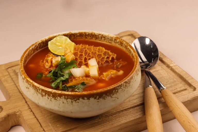 Menudo is a traditional Mexican soup made with beef tripe (cow’s stomach) and a rich, flavorful broth. It’s typically eaten as a festive breakfast (as it’s well-known as a hangover cure) or as a late-night dish after a festive party.